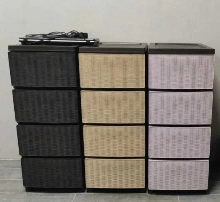 Пластиковий комод ротанг з 4 висувними шуфлядами, виконаний у сучасному мінімалістичному стилі. Його легко комбінувати з іншими меблями та декором у будь-якому приміщенні.